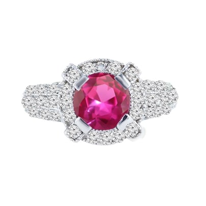 Pink, round-cut Tourmaline set in 18K white gold ring with white, high-quality diamonds | A reliable and secure purchase made directly from Diamond Bourse.